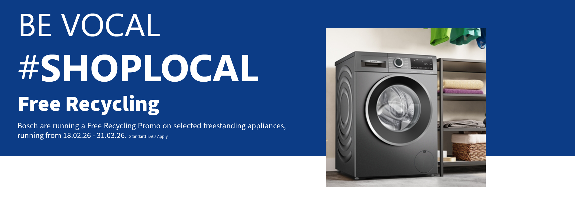 In partnership with Bosch, we’re giving you free recycling of your old appliance when buying one of the eligible models below.